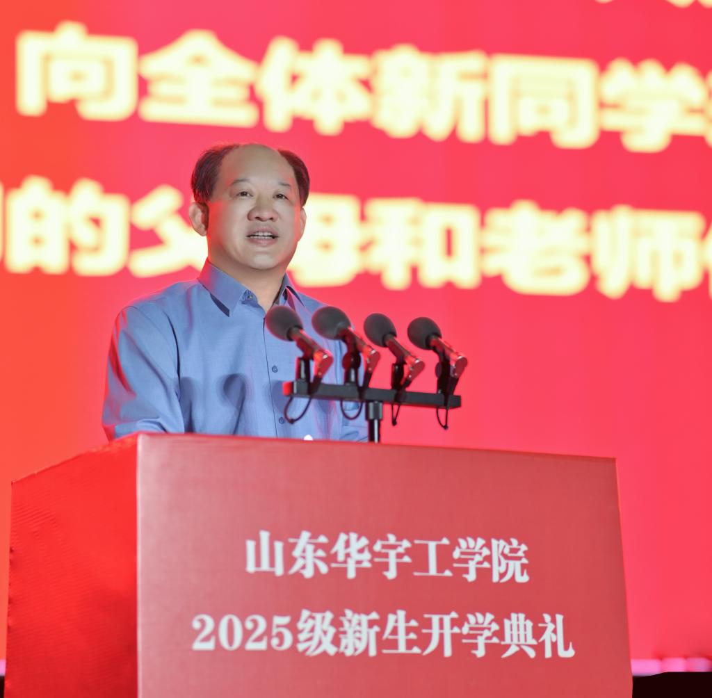 9月29日,山东华宇工学院2025级新生开学典礼在学校体育场举行。学校董事长杨义,执行校长梁玉国,副校长夏传波、马凤岗、王春光、魏东坡、侯建昌出席典礼。各部门单位主要负责人,2025级新生班级辅导员、学业导师,全体新生参加典礼。典礼由党委副书记、副校长高挺进主持。