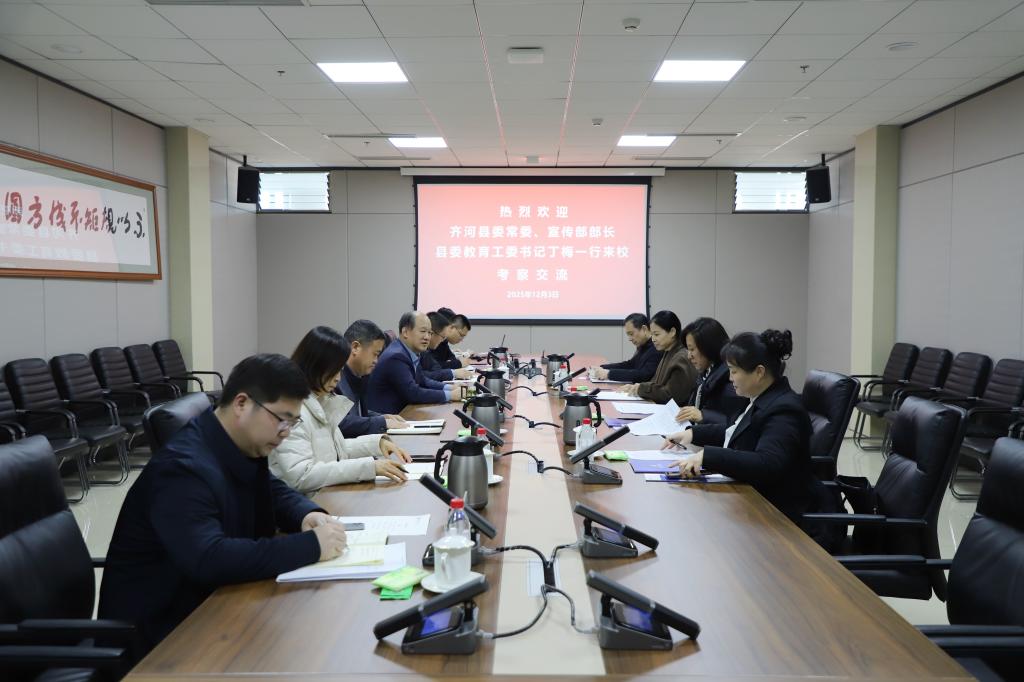 12月3日,齐河县委常委、宣传部部长,县委教育工委书记丁梅一行来校考察交流。学校执行校长梁玉国、副校长魏东坡、校长助理兼教务处处长雷海峰及相关职能部门负责人参加座谈交流。