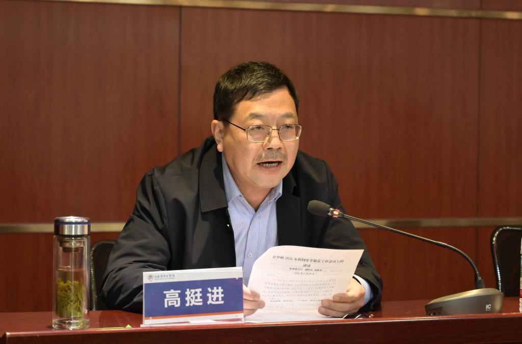 会上,高挺进作校园安全稳定工作报告。他全面总结了学校“十四五”期间保持安全稳定的经验做法,回顾了学校安全稳定工作所取得的成绩,指出了存在的问题和不足。从“科学研判,直面挑战,以‘归零心态’为‘十五五’期间校园安全稳定工作蓄势赋能” “压实举措,笃行实干,以严实担当保障‘十五五’校园安全稳定良好开局”等方面,对做好2026年校园安全稳定工作进行了全面部署。