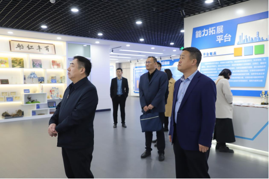 座谈会前,史成志一行实地考察了学校产业园区、科研实验室和第二课堂教学体验中心。
