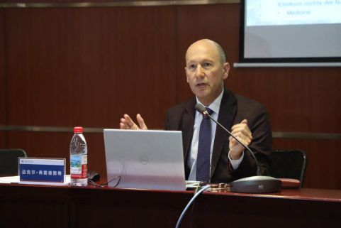 迈克尔·费雷德里希对我校的热情接待表示感谢。他介绍了慕尼黑工业大学的办学历史,详细分享了其团队在切削机床和生成式制造工艺、制造技术及系统领域的研究成果,并期待双方在科研创新攻关、学术交流互访等方面建立长期稳定的合作关系。
