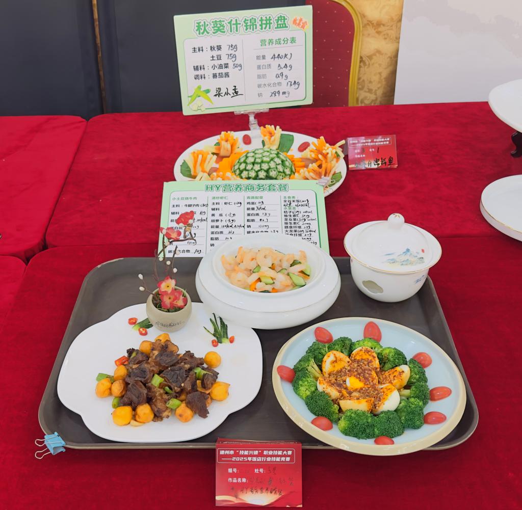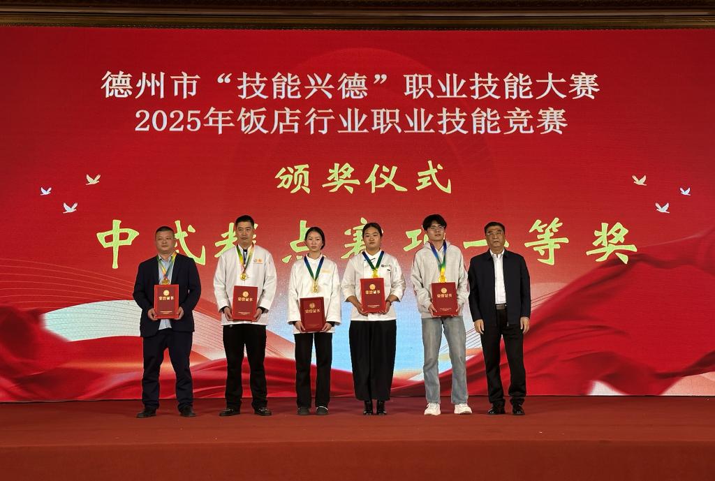 11月5日,德州市“技能兴德”2025饭店行业技能竞赛圆满落幕。我校后勤餐饮服务团队在比赛中表现出色,凭借过硬的业务能力和卓越的职业素养,一举荣获一等奖3项、二等奖3项。