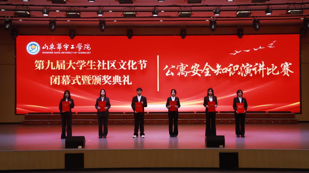 会上,工作人员宣读了《山东华宇工学院第九届大学生社区文化节表彰决定》,并对获奖集体和个人代表进行颁奖。机械工程学院“十佳学风宿舍”代表分享了宿舍成员的励志成长故事,展现了我校新时代大学生争先创优、奋进有为的精神风貌;电气工程学院孙爽同学以《筑牢宿舍安全防线,共护青春安全港湾》为题,围绕宿舍用电安全进行了主题宣讲,明确了宿舍安全用电行为规范,提高了同学们的安全意识;经济管理学院带来的《同“宿”同行,逐光而上》情景剧,以宿舍日常生活琐事为创作原点,展现了同学间守望相助、知规守矩、团结友爱的感人故事,真实鲜活的剧情引起现场同学们共鸣。