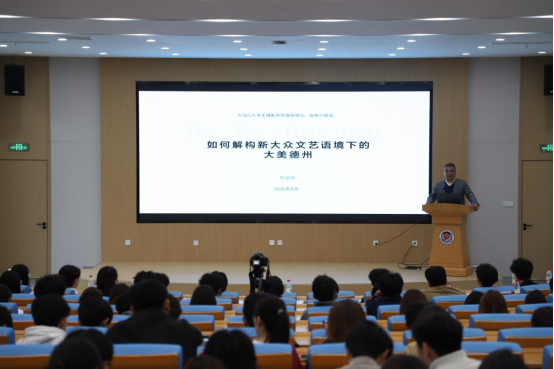 启动仪式结束后,德州摄影公益大讲堂接续举行。周建新以《如何解构新大众文艺语境下的大美德州》为题,为在场师生作专题分享。